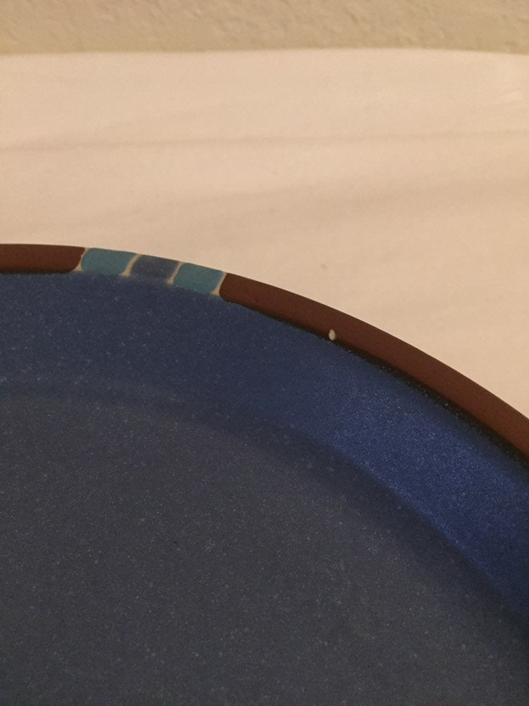 Dinner plate in the Dansk Mesa blue southwestern pattern. Made in Portugal. The Portugal plates are much heavier than the Japan plates, also thicker.