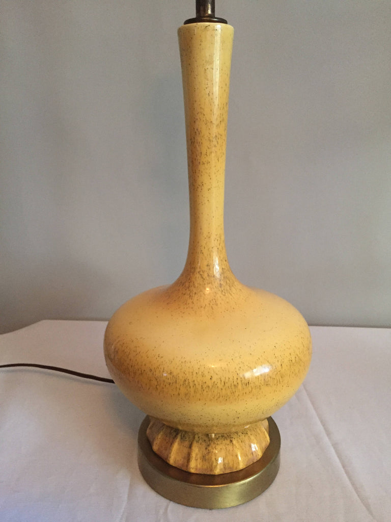 Vintage Yellow Ceramic Table Lamp on a Brass base. The lamp is in very good condition. Sold WITHOUT shade. The original wiring is in good condition. Let me know if you have any questions.