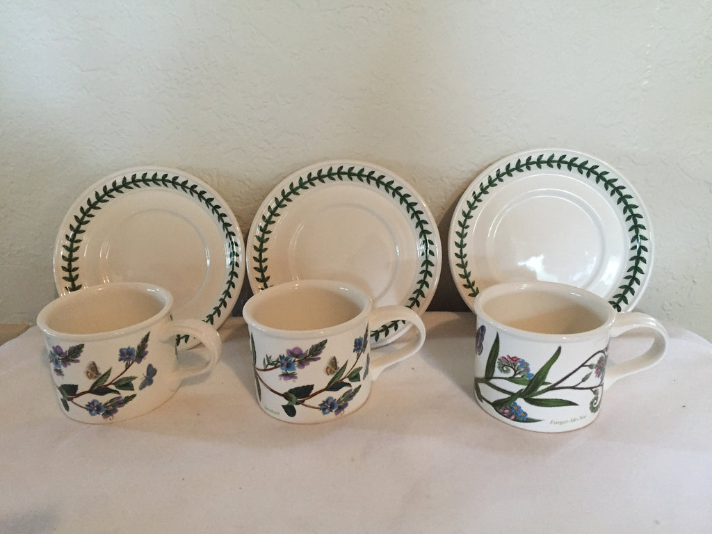 1987 Portmeirion Botanic Garden Drum Flat Cup and Saucer Set -choose pattern