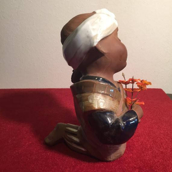 ON SALE - Large Japanese Clay Pottery Asian Girl - 1970's Mid Century Figurine - Made in Japan by Uctci