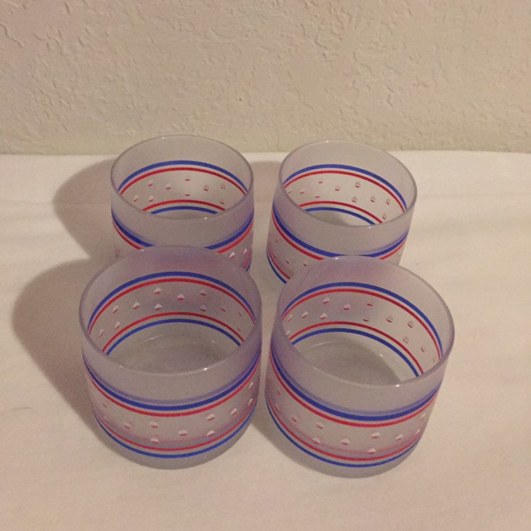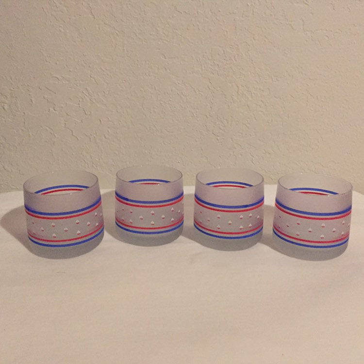 Set of 4 Mid Century Modern Bar glasses Nautical Sailboats Frosted heavy weight