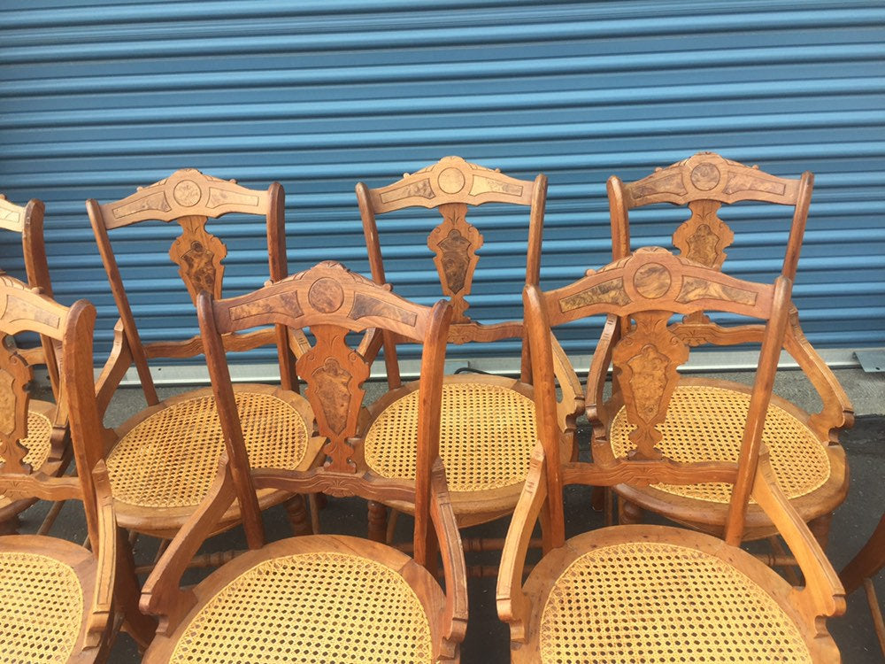 Set of 8 Antique Victorian Hip Rest Cane Seat Maple Chairs