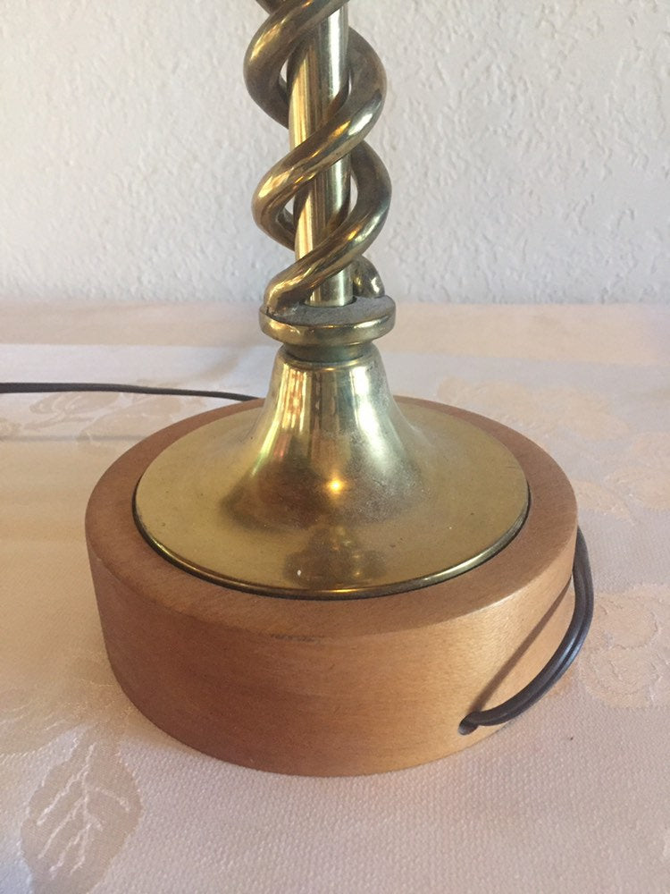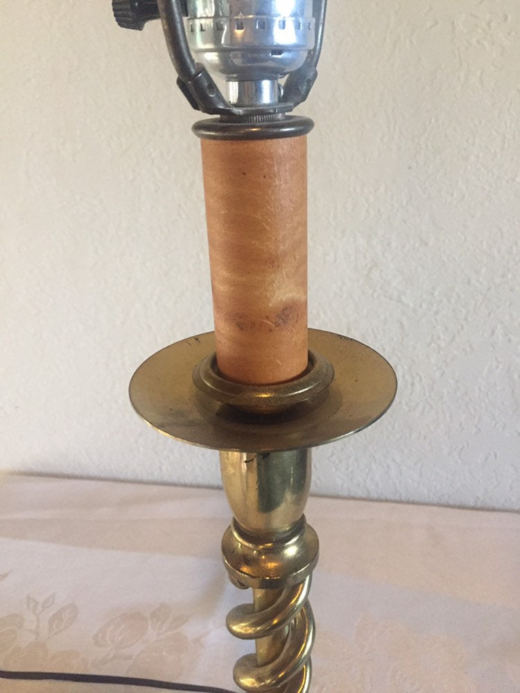 Vintage Brass twisted Candlestick Table lamp with wood base