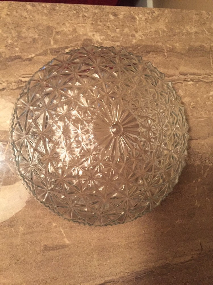 Vintage replacement shade for vintage ceiling fixture. Mid Century Crystal Clear Shade Light Fixture Cover Pressed Glass Geometric Design Globe Flush Mount Light Shade.