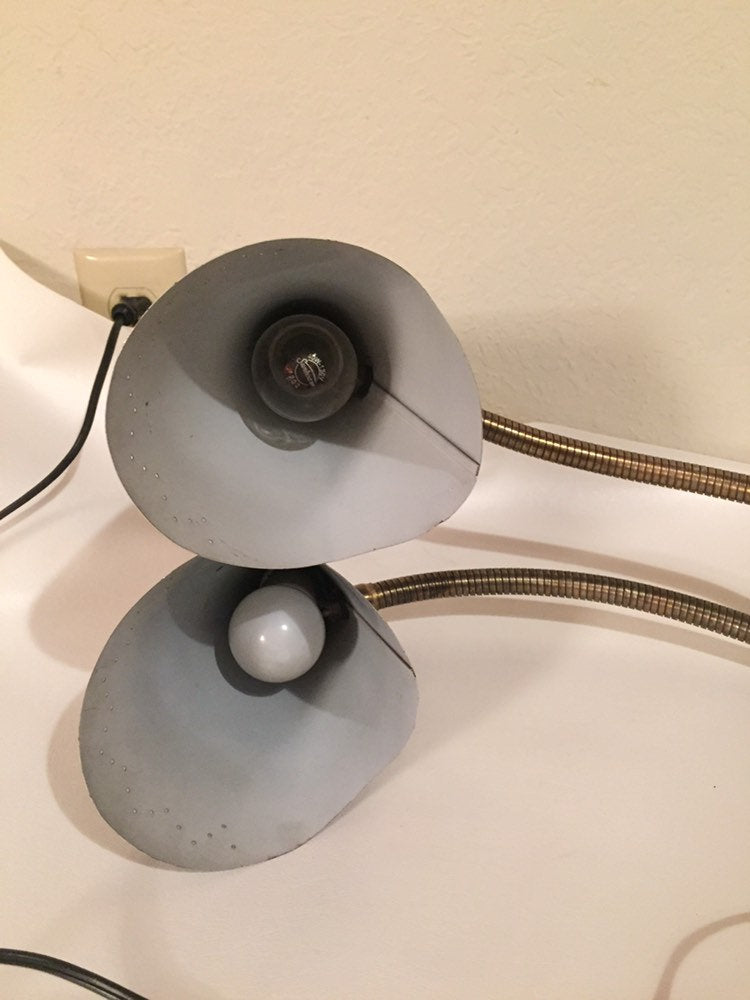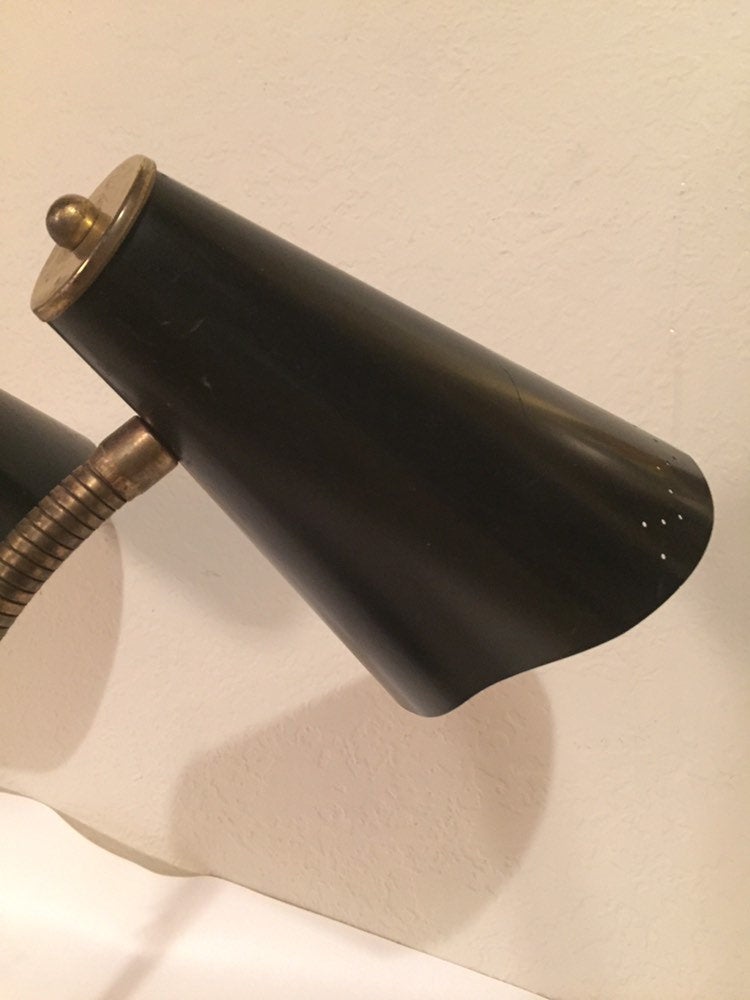 Vintage Double Black Enamel and Brass Gooseneck Desk lamp student desk lamp