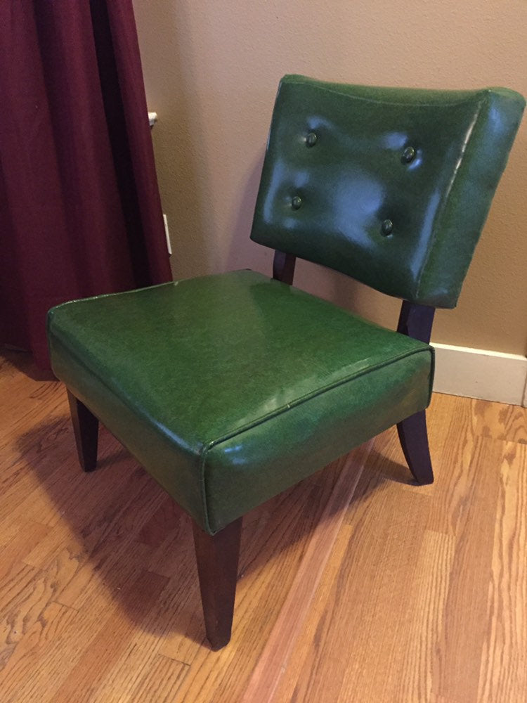 Retro Atomic Slipper Chair, Green Slipper Chair, Art Deco Green Chair- 2 available ( 1 needs upholstery)