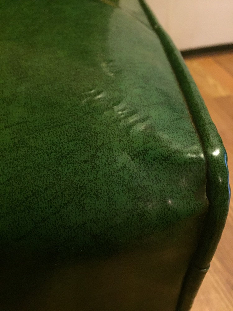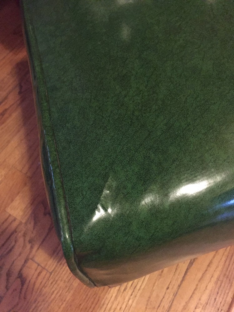 Vintage Art Deco Green Vinyl 1940's slipper / lounge chair in very good condition.