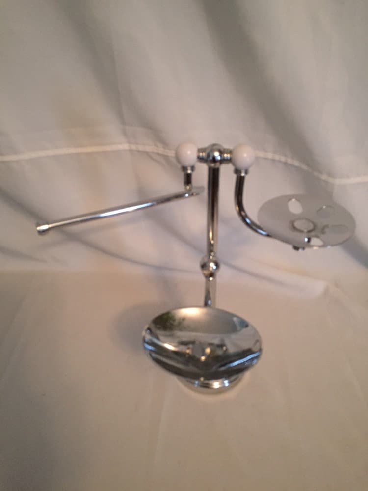 Vintage Reproduction chrome and Porcelain Soap/ Toothbrush / Hand towel Holder